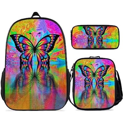 Butterfly Backpack, Butterfly Backpack For Girls 3 PCS for Teens, Boys and Girls Butterfly Bookbag