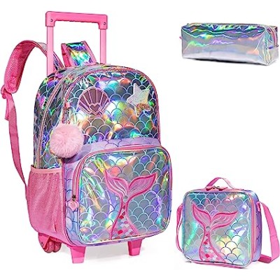 Kids Wheeled Backpack Roller Backpack with Lunch Bag Set Girls Boys